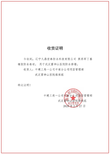 聽聞建設(shè)沈陽方艙醫(yī)院的消息后,九鼎宏泰聞令而動(dòng),迅速成立抗疫突擊隊(duì),全員不分晝夜,生產(chǎn)線24小時(shí)不停運(yùn)轉(zhuǎn),確保將重要的防水建設(shè)物資第一時(shí)間送達(dá)沈陽方艙醫(yī)院應(yīng)急改造工程的一線施工現(xiàn)場,為沈陽疫情防控貢獻(xiàn)九鼎宏泰的一份力量。
