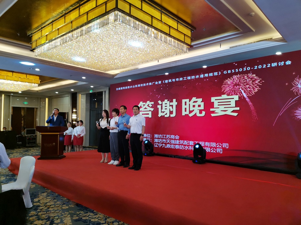 答謝晚宴,濰坊天強建筑配套工程有限公司董事長李娟致祝酒詞,立威結(jié)構(gòu)自防水技術(shù)山東濰坊推廣會在一片喜慶的氛圍中圓滿結(jié)束。