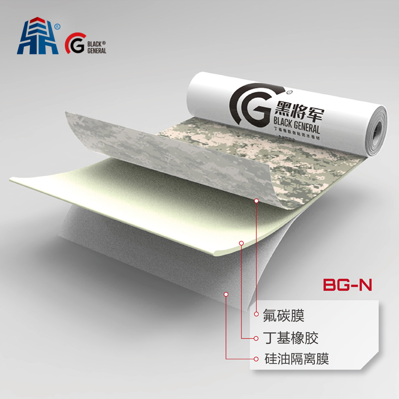 BG-N丁基橡膠耐候型自粘防水卷材是以氟碳耐候膜為覆面材料,以丁基橡膠為粘結材料,并覆以隔離材料而組成的本體自粘防水卷材??刹捎米哉郴驖皲伔ㄊ┕?。