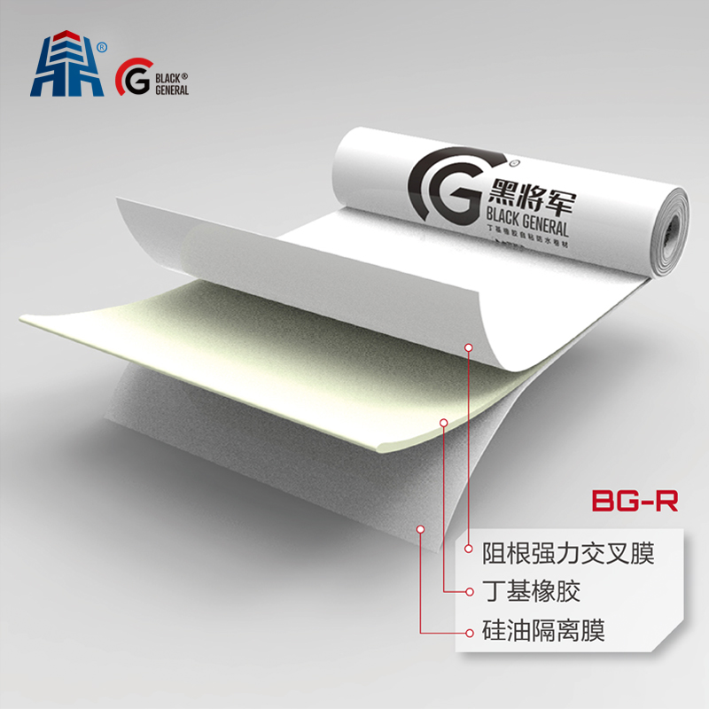 BG-R丁基橡膠耐根穿刺自粘防水卷材是在具有耐根穿刺功能的高分子片材上, 涂覆添加阻根劑的優(yōu)質(zhì)丁基橡膠自粘膠料,并覆以隔離層而制成的采用自粘法施 工的防水卷材。卷材兼具化學(xué)阻根和物理阻根的雙重效果,也可以與BG-C丁基 非固化橡膠防水涂料復(fù)合使用,粘結(jié)強(qiáng)度大、持久不可逆,受環(huán)境因素影響小, 消除竄水層,造就出最完美的防水系統(tǒng)。