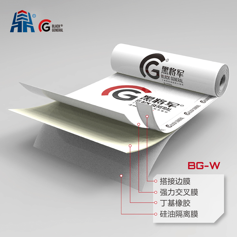 BG-W丁基橡膠高分子自粘防水卷材是以強(qiáng)力交叉膜為覆面膜,以丁基橡膠為粘結(jié)材料,并覆以隔離材料而組成的本體自粘防水卷材??刹捎米哉郴驖皲伔ㄊ┕?。